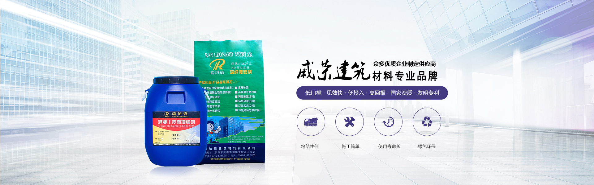 東莞市戚榮建筑材料有限公司是東莞市瑞納德建筑材料有限公司旗下子公司,是一家集研發(fā)、生產(chǎn)、銷售、技術(shù)服務為一體的技術(shù)型企業(yè),,并通過ISO9001:2000質(zhì)量管理體系及ISO14001:2004環(huán)境管理體系世界標準認證。現(xiàn)已在廣東、浙江、北京、河南鄭州、沈陽、重慶等均有生產(chǎn)基地。